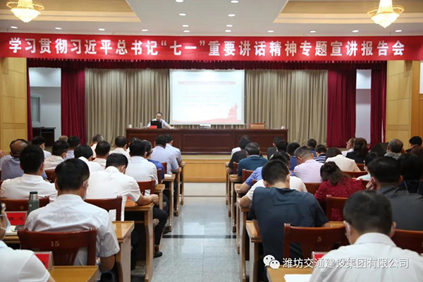 9月3日上午,濰坊交通建設集團有限公司舉辦了學習貫徹習近平總書記“七一”重要講話精神專題宣講報告會,邀請了市學習貫徹習近平總書記“七一”重要講話精神宣講團成員、市檔案館館長張志霄同志作宣講報告。集團公司黨委書記、董事長劉文東同志帶領集團公司機關……......